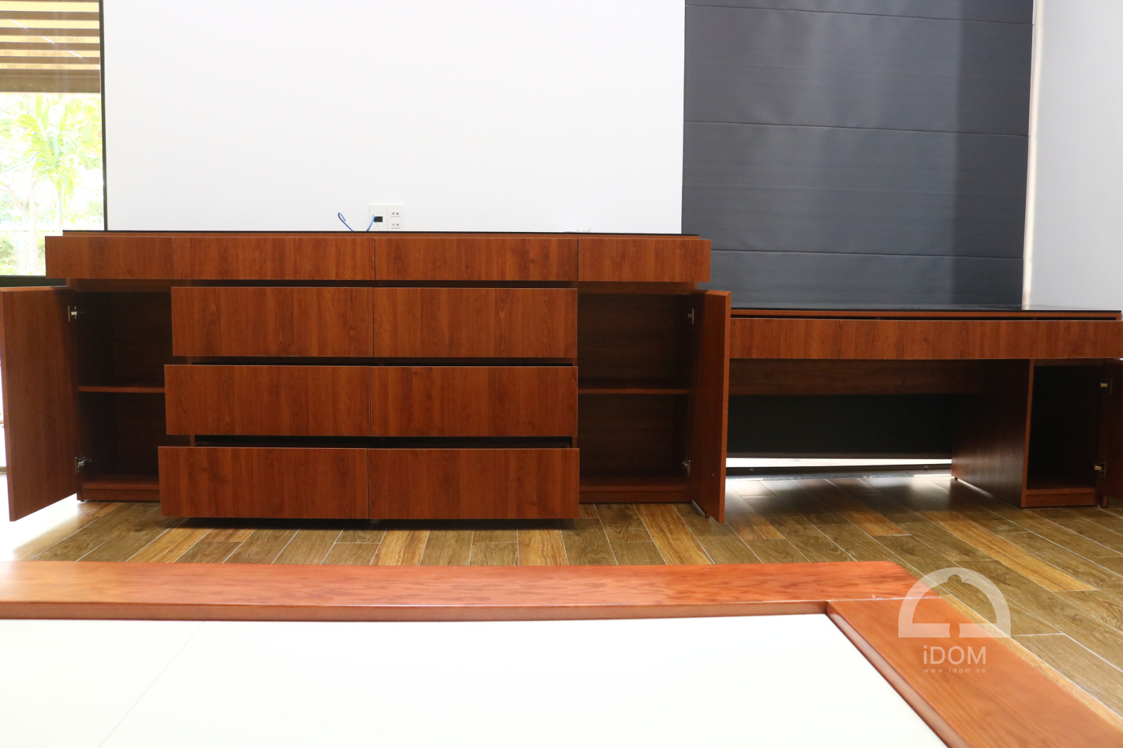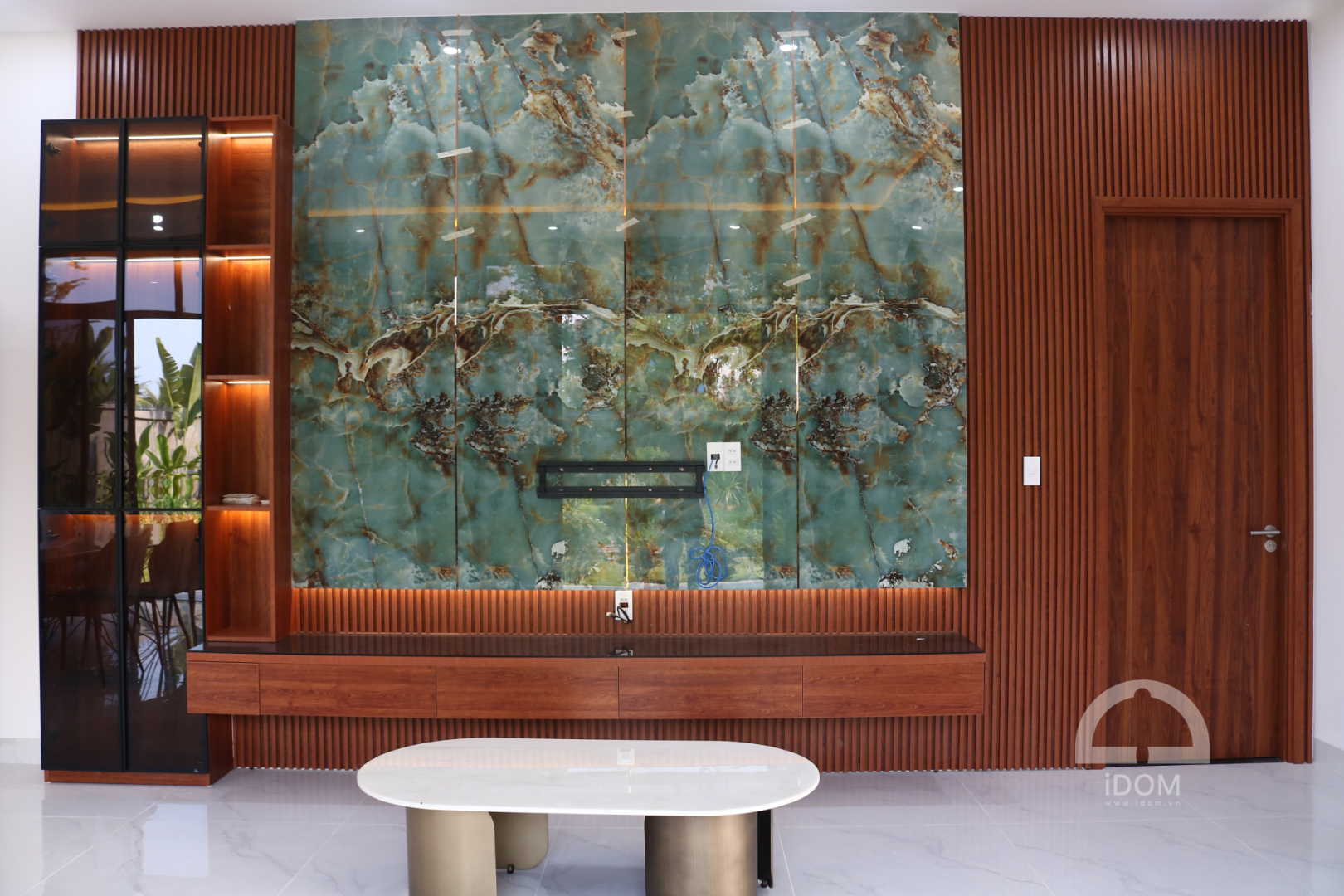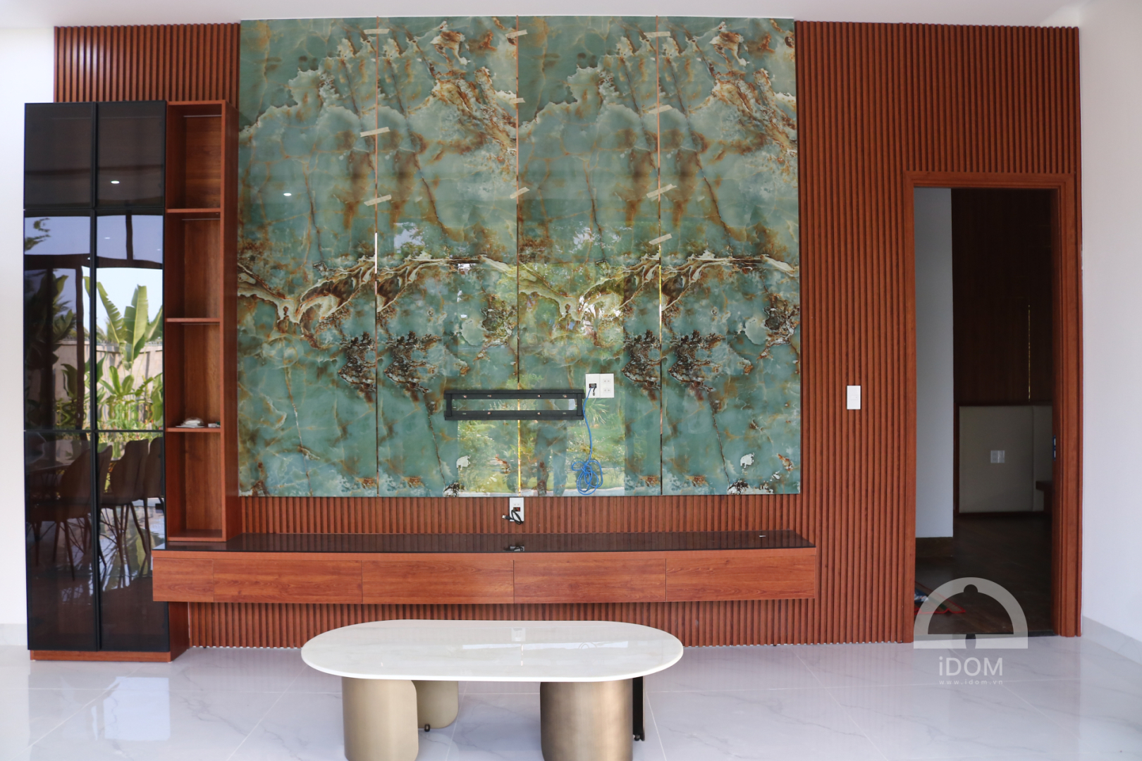 - Phòng khách: Vách ốp phòng khách, kệ tivi, tủ trang trí