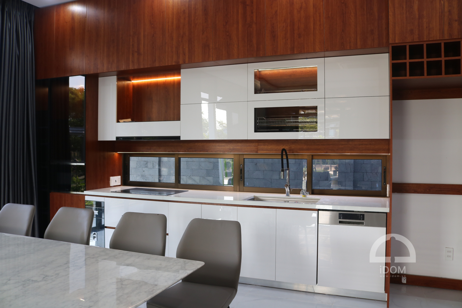 Thiết bị: Máy rửa chén Malloca, Bếp từ Fagor, Hút mùi Fagor, Lò vi sóng Fagor, Chậu vòi Konox, Máy lọc nước