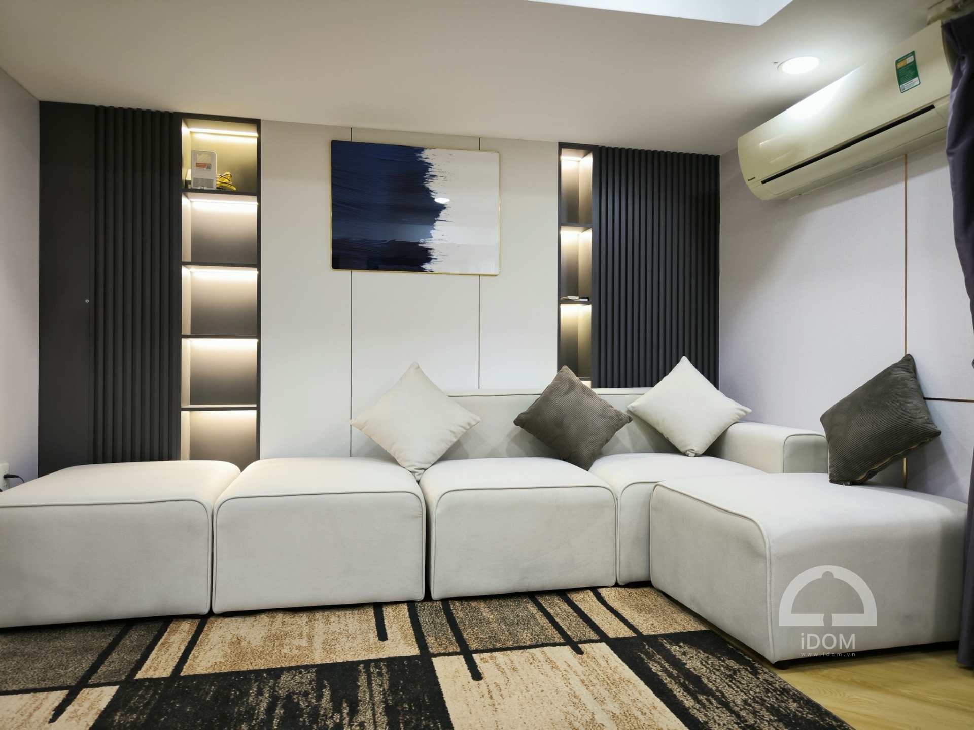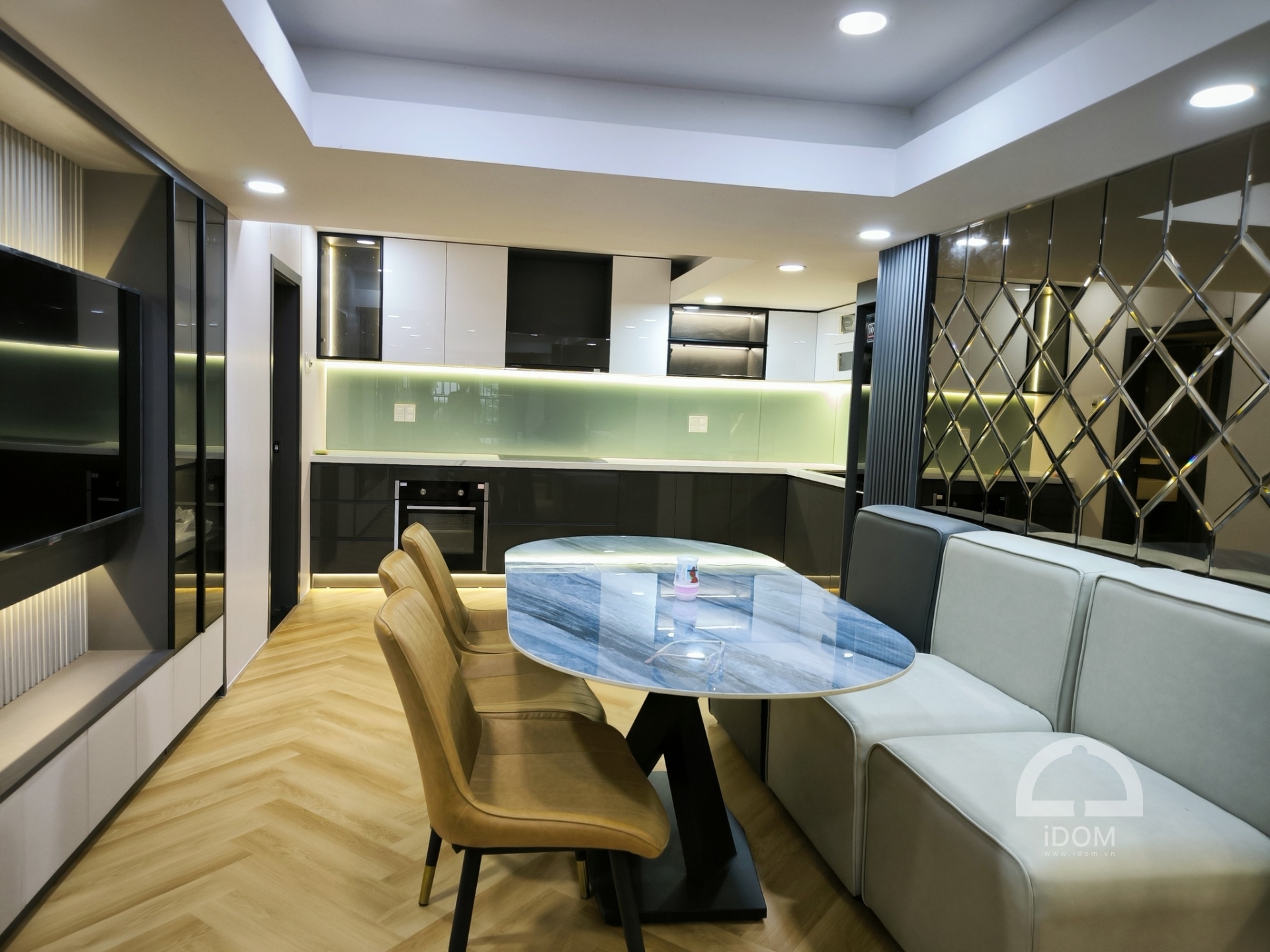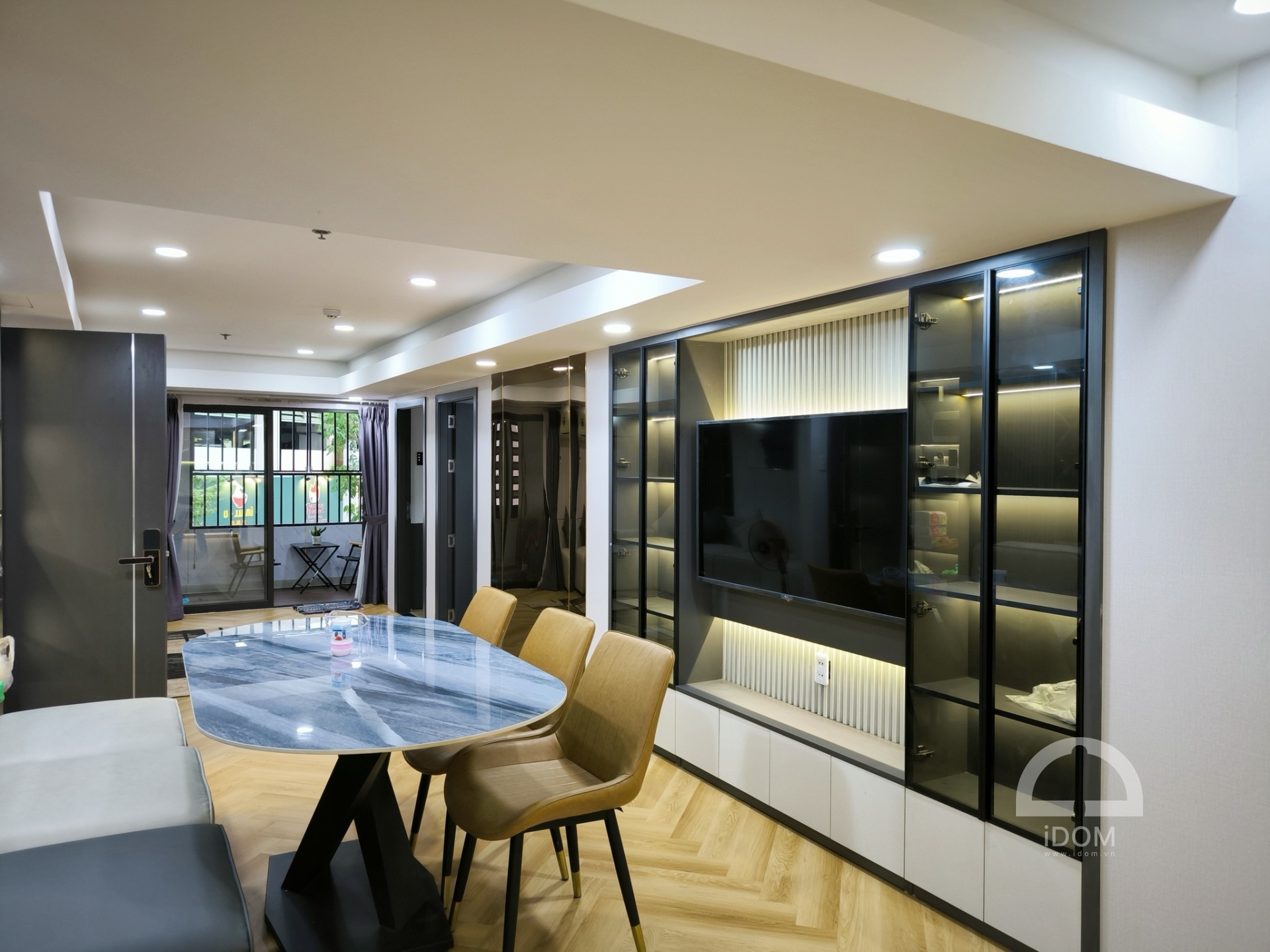 Nội thất - Tủ bếp IDOM thi công hoàn thiện xong nội thất căn hộ chung cư 2 phòng ngủ tại căn hộ Monochy Đà Nẵng. Căn hộ được thiết kế theo phong cách hiện đại, toàn bộ sử dụng chất liệu gỗ công nghiệp An Cường đem đến một không gian sống ấm cúng và bền đẹp. Sau đây là một số hình ảnh thực tế được thực hiện bởi IDOM.