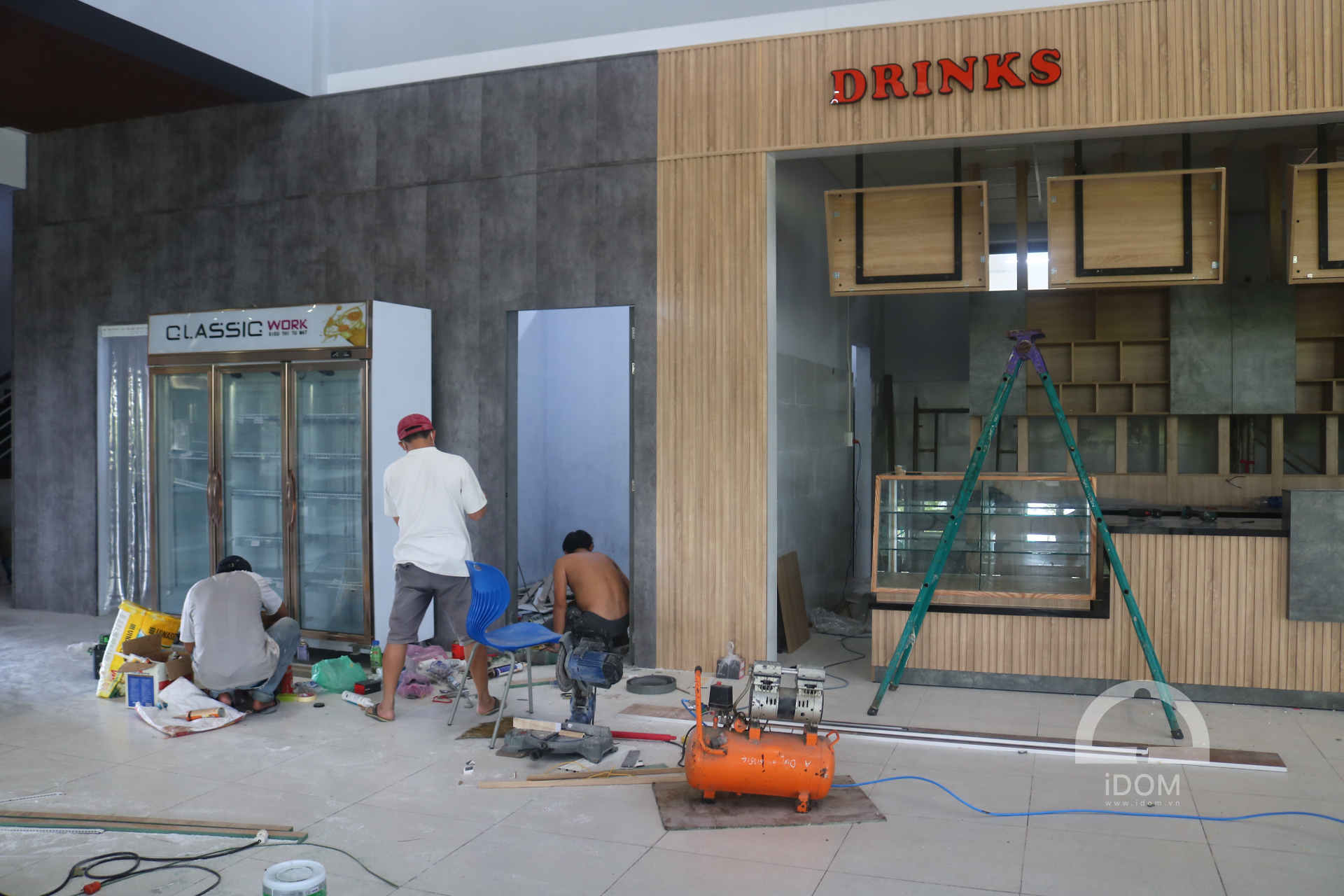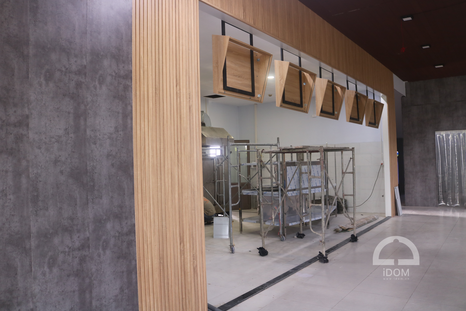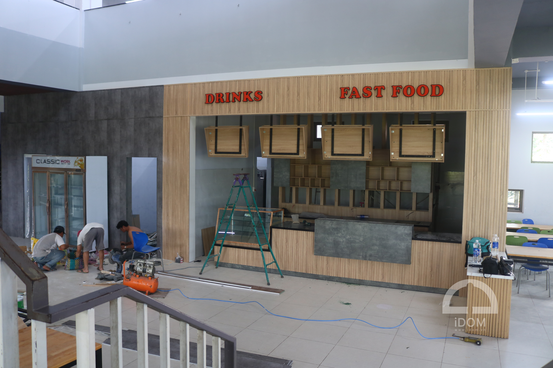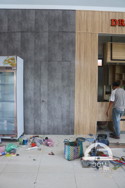 - Quầy nước uống, thức ăn nhanh: ốp vách, bếp nấu, tủ thực phẩm, khung trang trí, vách lam trang trang trí.