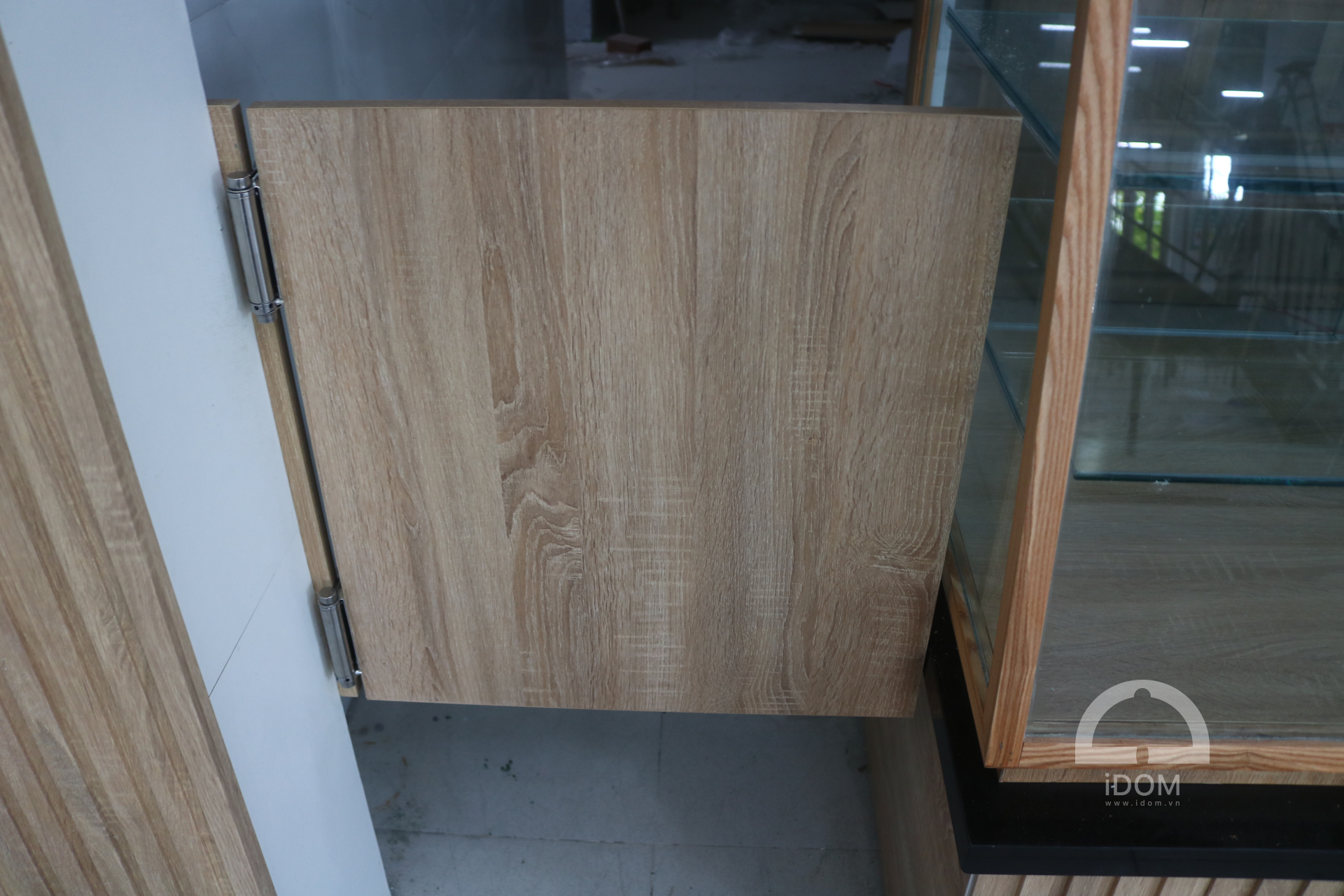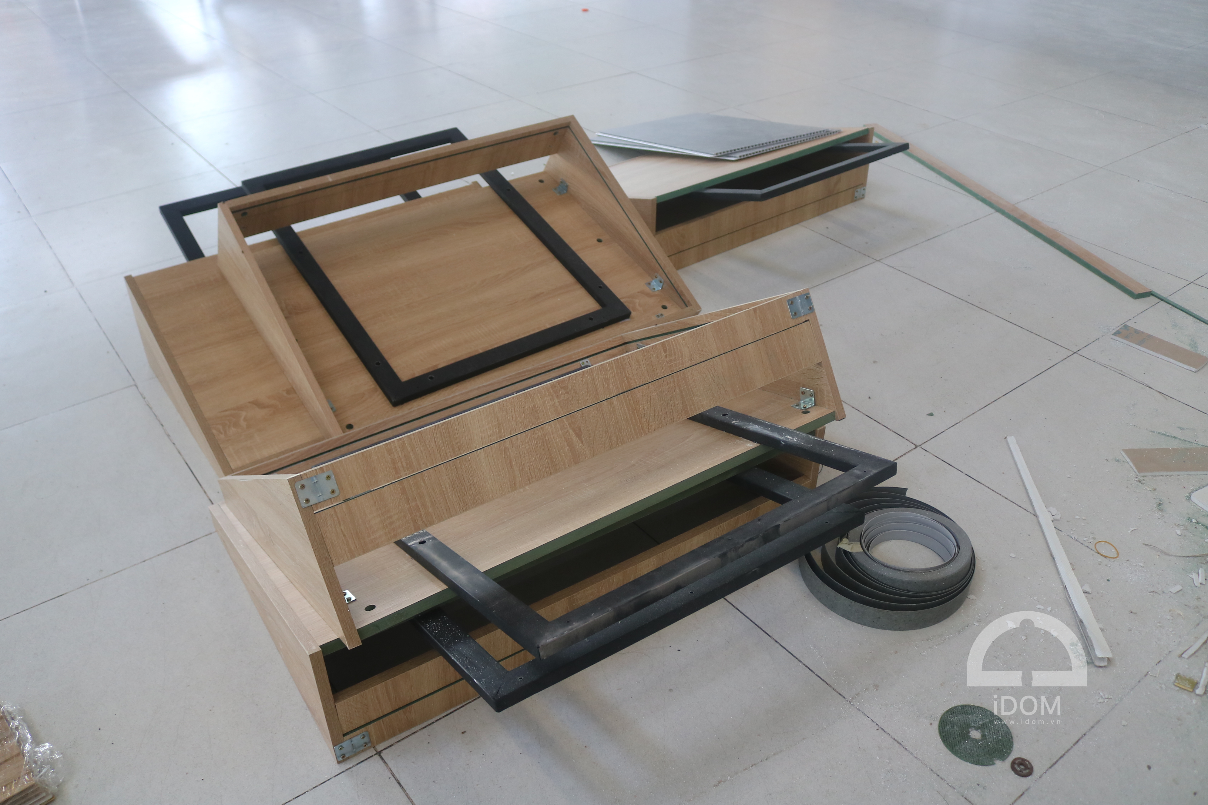 Chất liệu: gỗ công nghiệp, nhựa PVC, đá tự nhiên, kính cường lực, sắt.