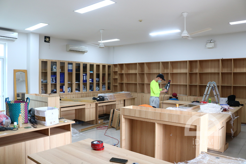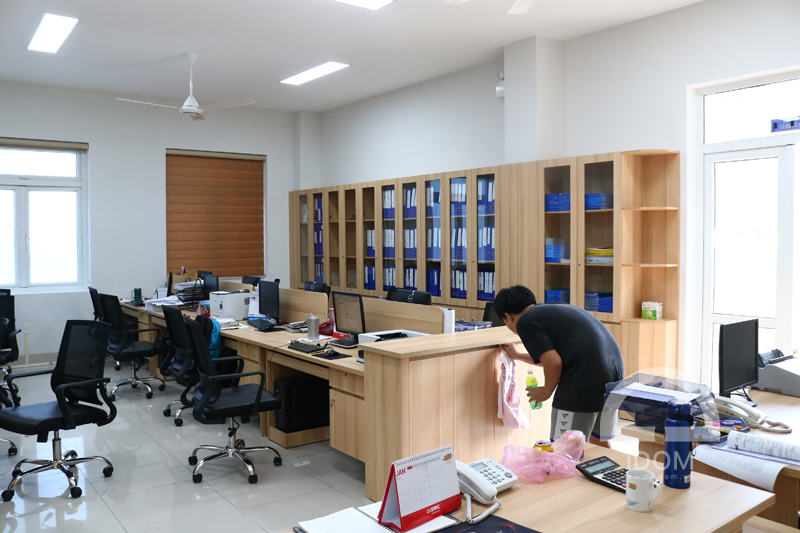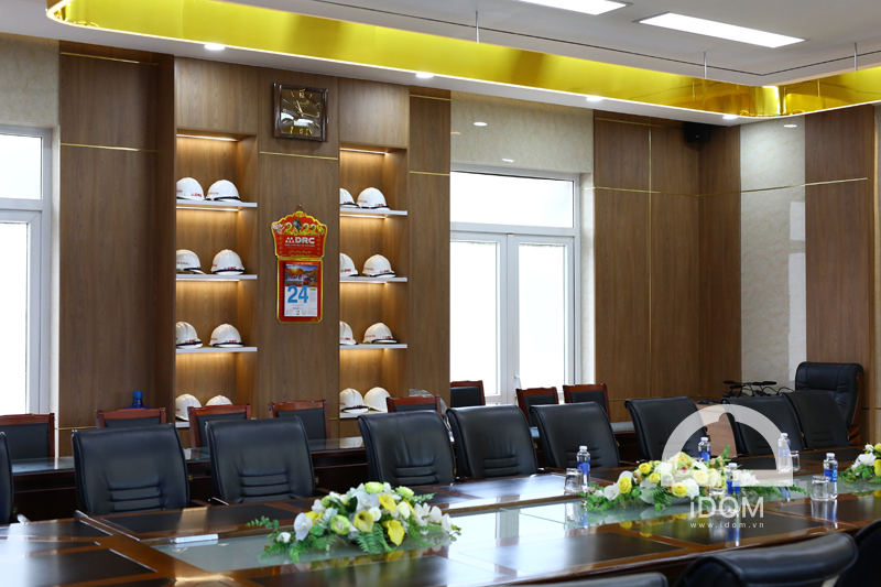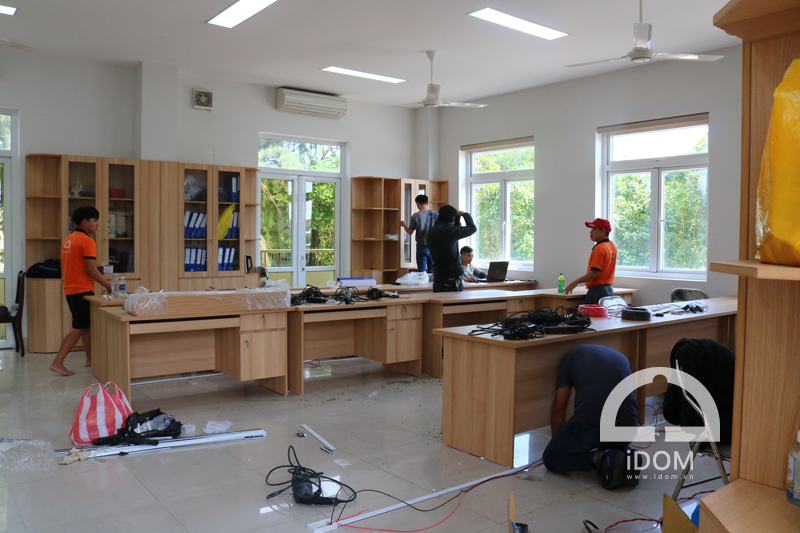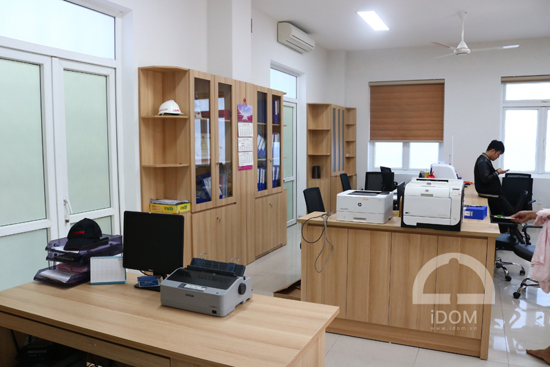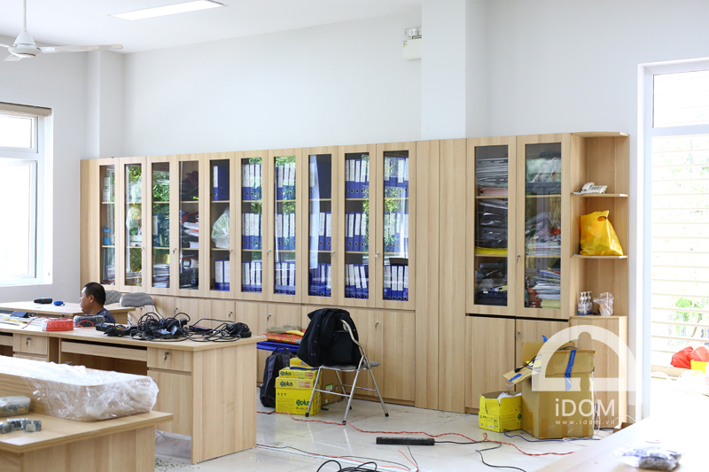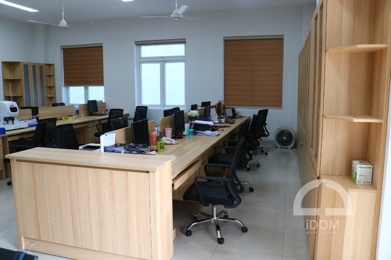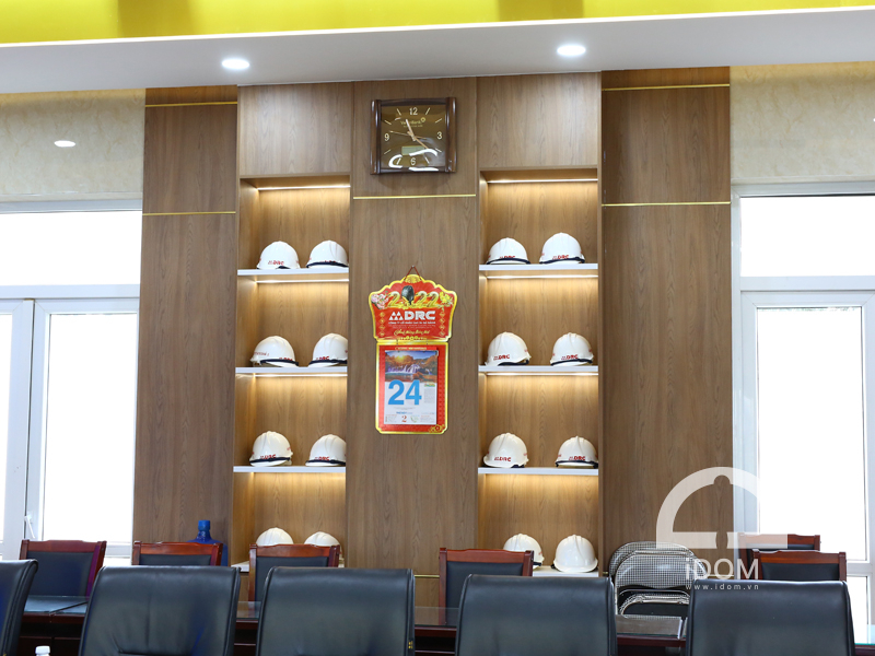 Các hạng mục thi công: trần, tường gỗ, sàn gỗ, bàn ghế, tủ đựng hồ sơ, tủ cá nhân, kệ trang trí, vách ngăn bàn làm việc..v.v)