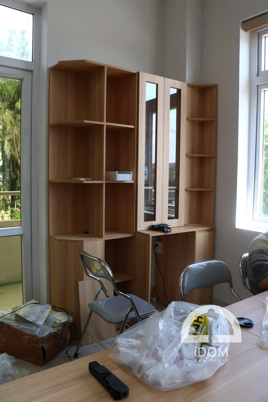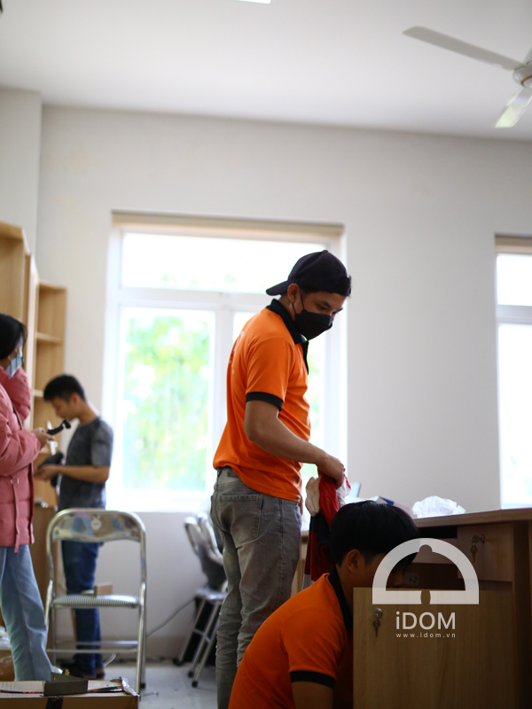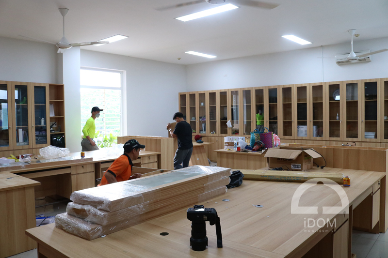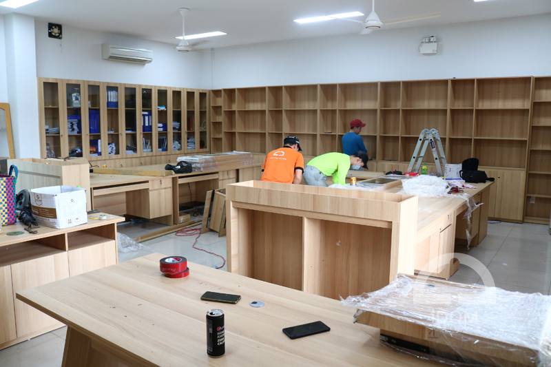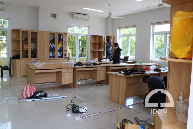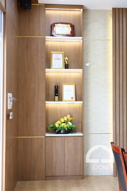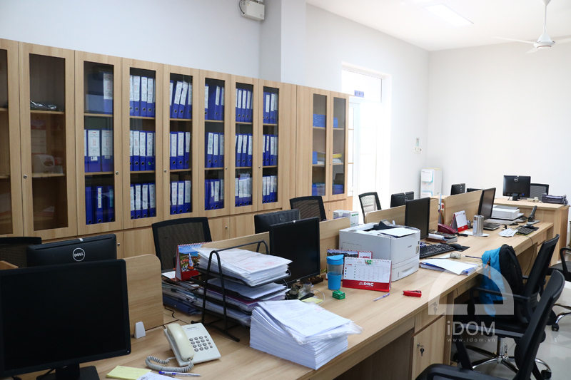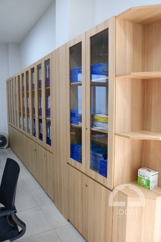 Các hạng mục thi công: trần, tường gỗ, sàn gỗ, bàn ghế, tủ đựng hồ sơ, tủ cá nhân, kệ trang trí, vách ngăn bàn làm việc..v.v)