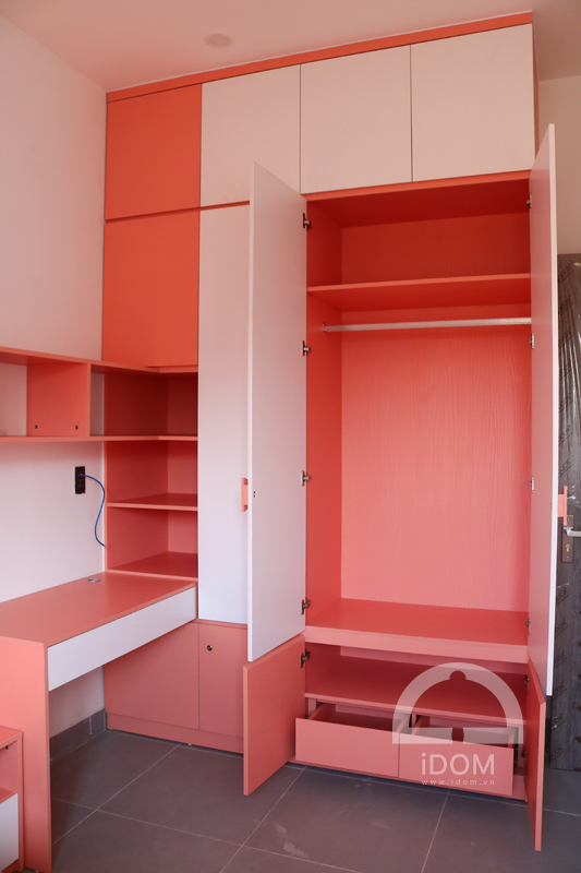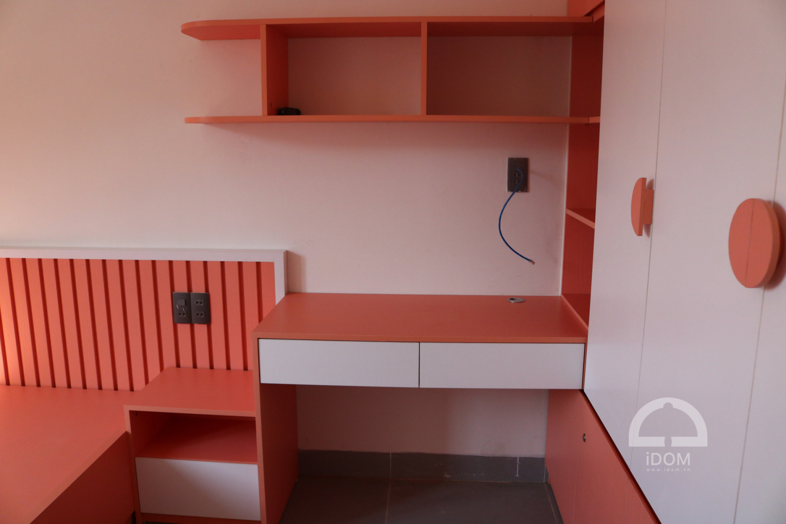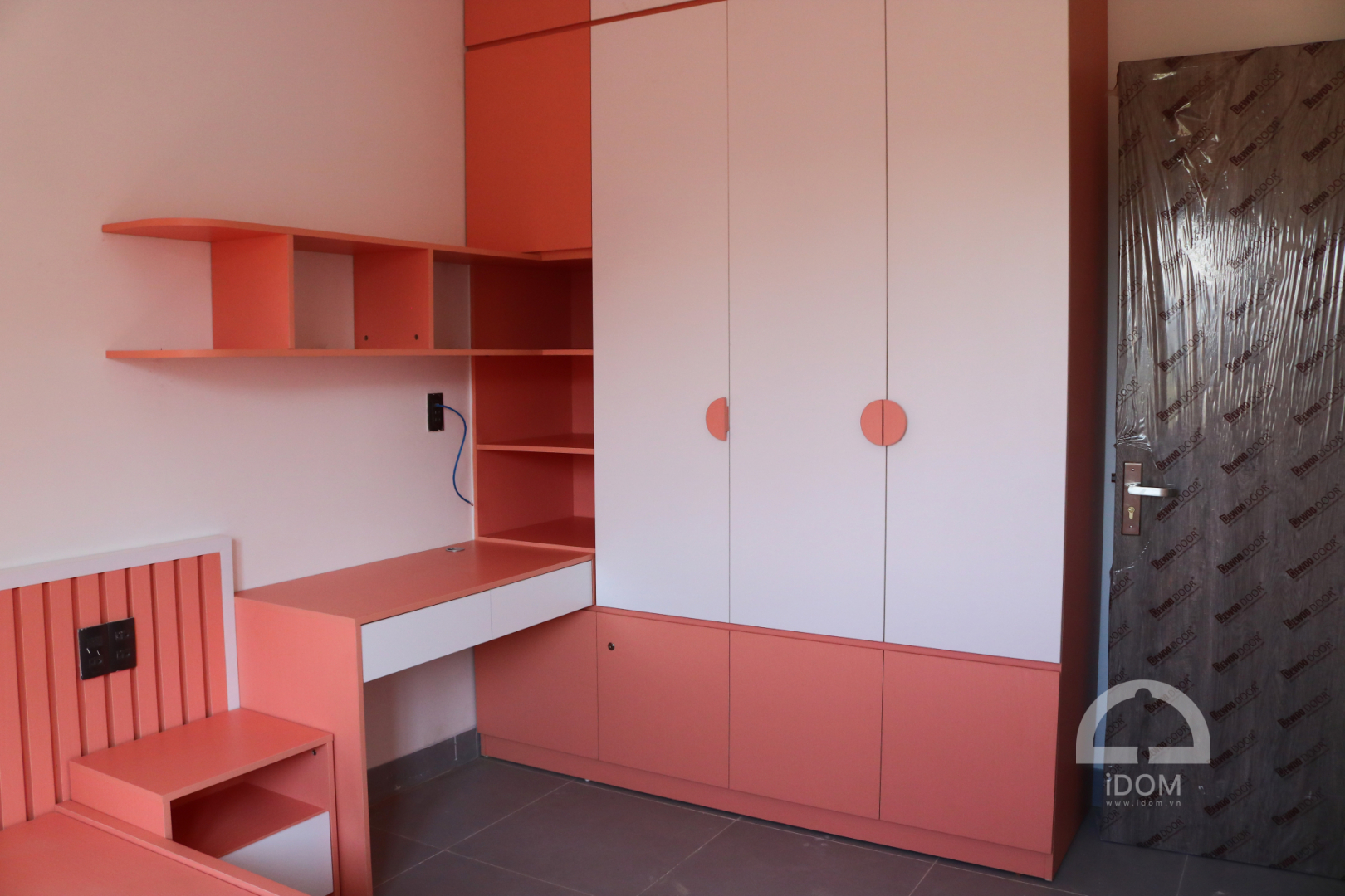 - Phòng ngủ bé: Giường ngủ, Vách ốp đầu giường, Tủ quần áo, Tab đầu giường, Bàn học, Kệ sách.