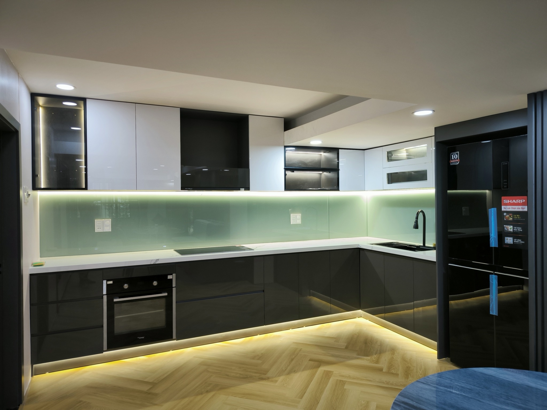 - Phòng bếp: Tủ bếp trên + dưới + thùng tủ lạnh + đụng trần