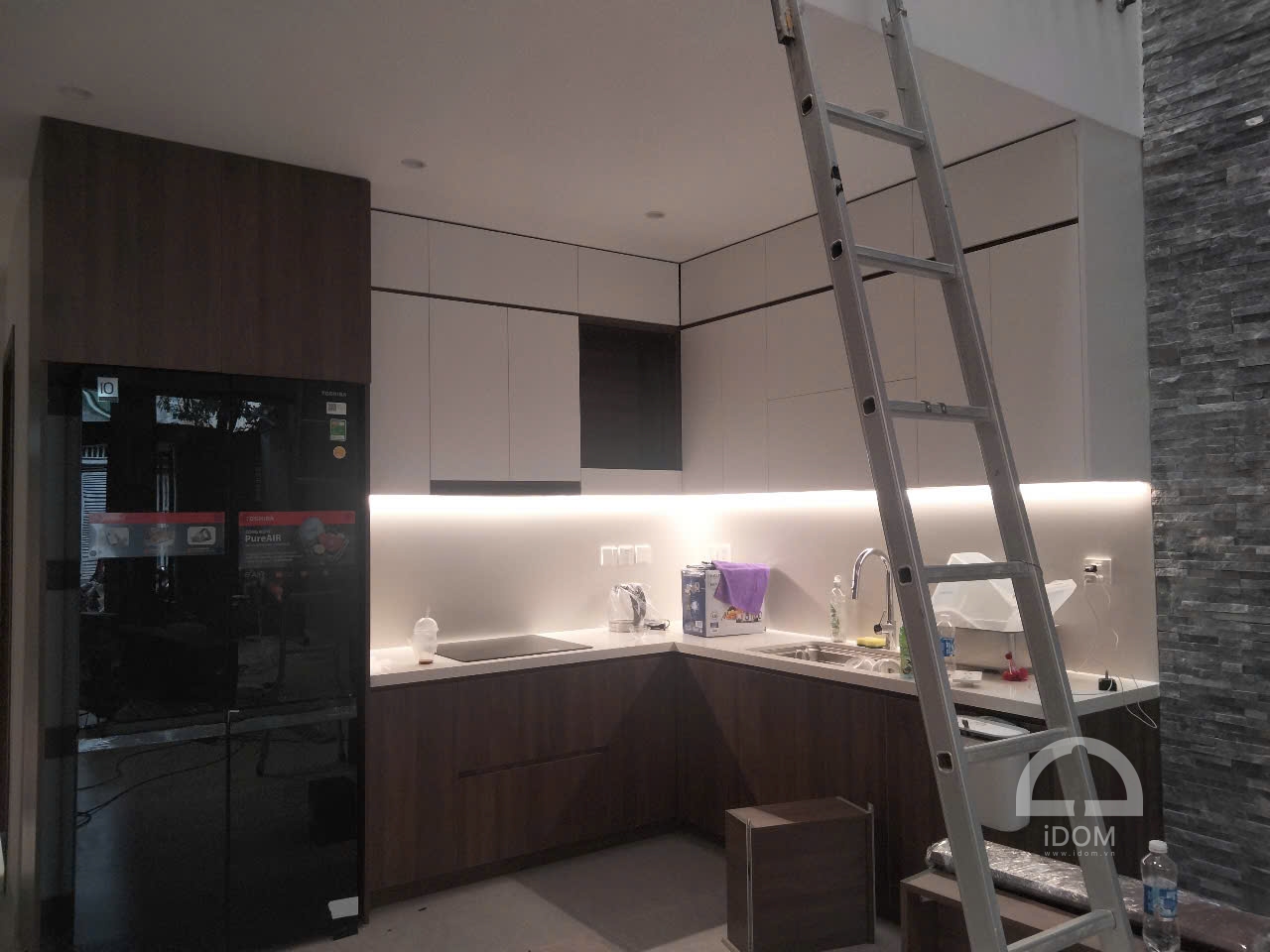 Nội thất nhà Anh Tuấn là một trong những công trình được IDOM gấp rút hoàn thiện và bàn giao cho gia chủ trước thèm tết Nguyên Đán 2025. Chất liệu Nhựa là sự lựa chọn của gia đình anh cho không gian bếp, phần nội thất còn lại sử dụng gỗ công nghiệp An Cường. Dưới đây là một số hình ảnh thực tế thi công và hoàn thiện.