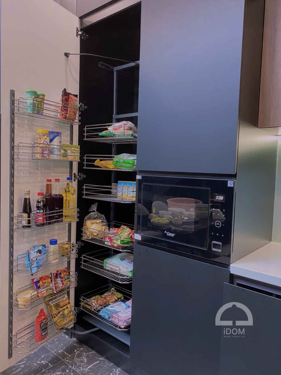 - Phòng bếp: Tủ bếp, Tủ đồ khô, Tủ kịch trần, Thùng tủ lạnh.
