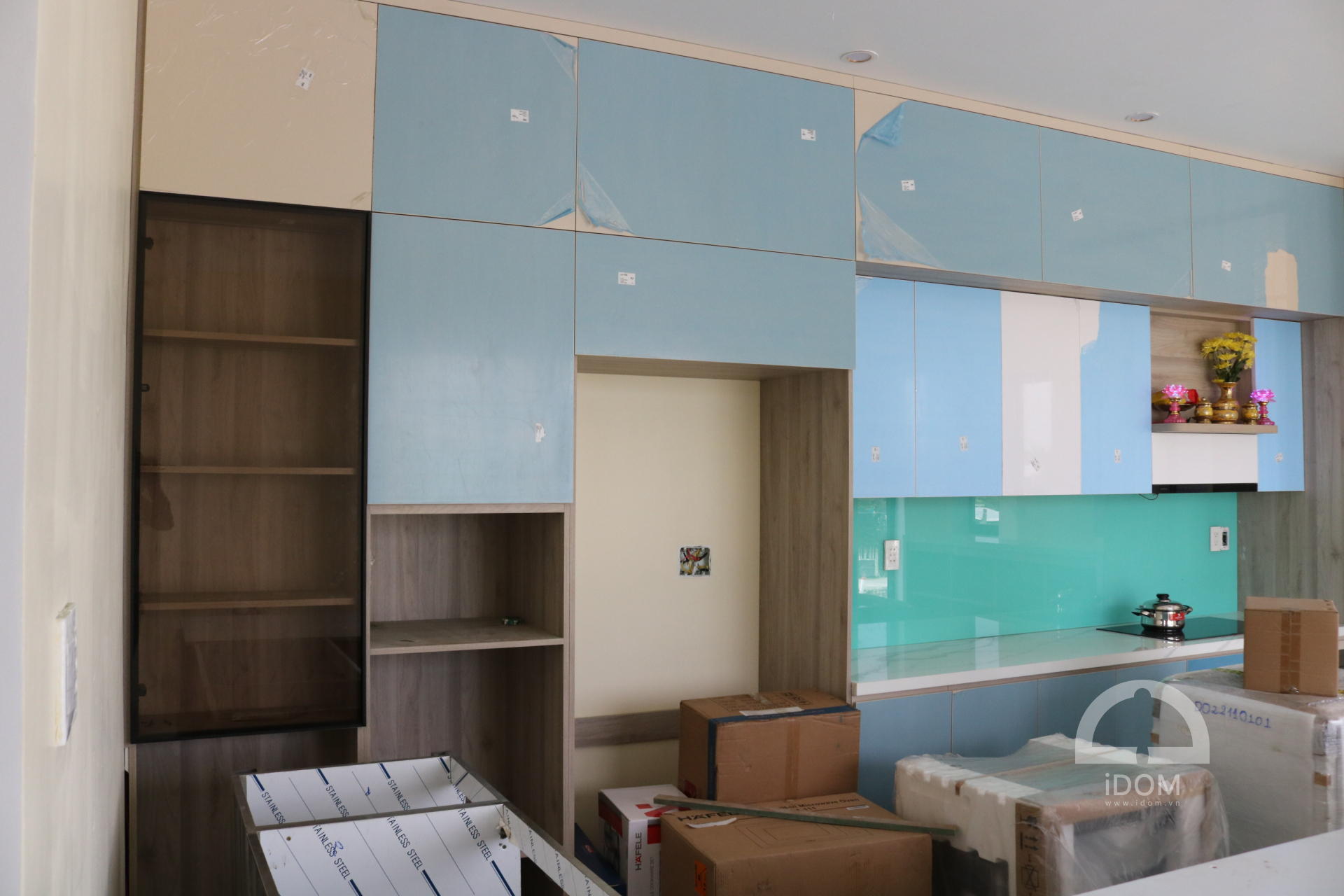 Thiết bị & Phụ kiện: Kệ chén bát Hafele, Thọa xoong nồi Hafele, Gia vị Hafele, Tay nâng Blum, Bản lề Hafele, Ray trượt Hafele.