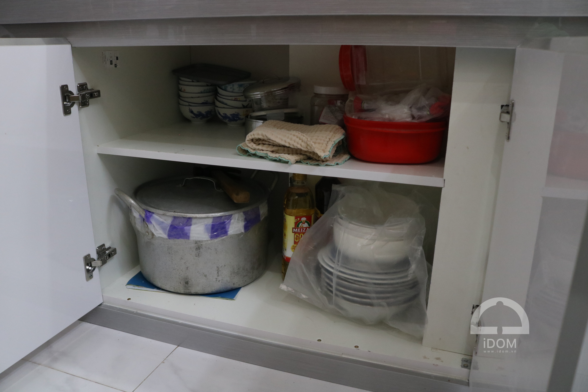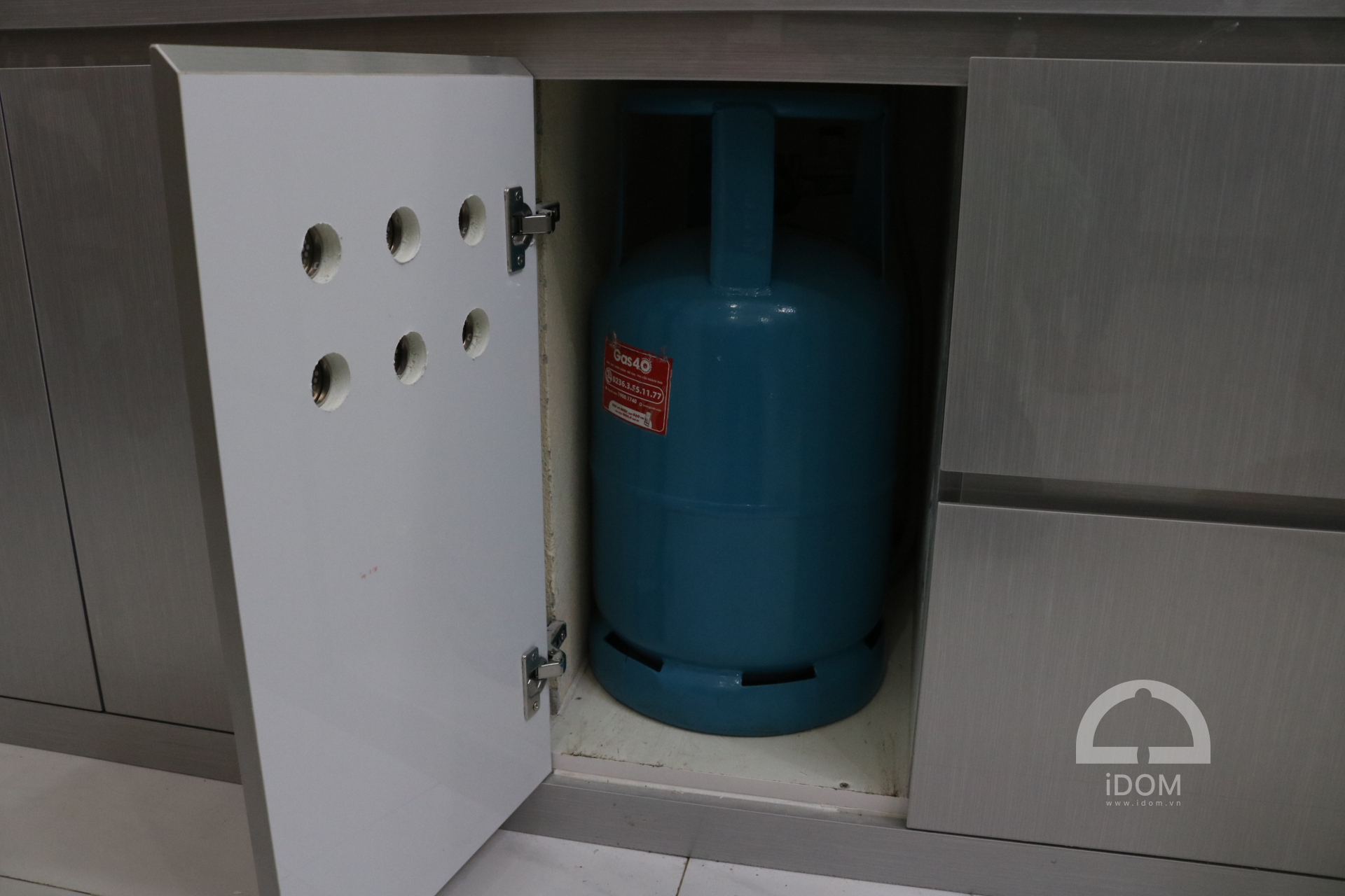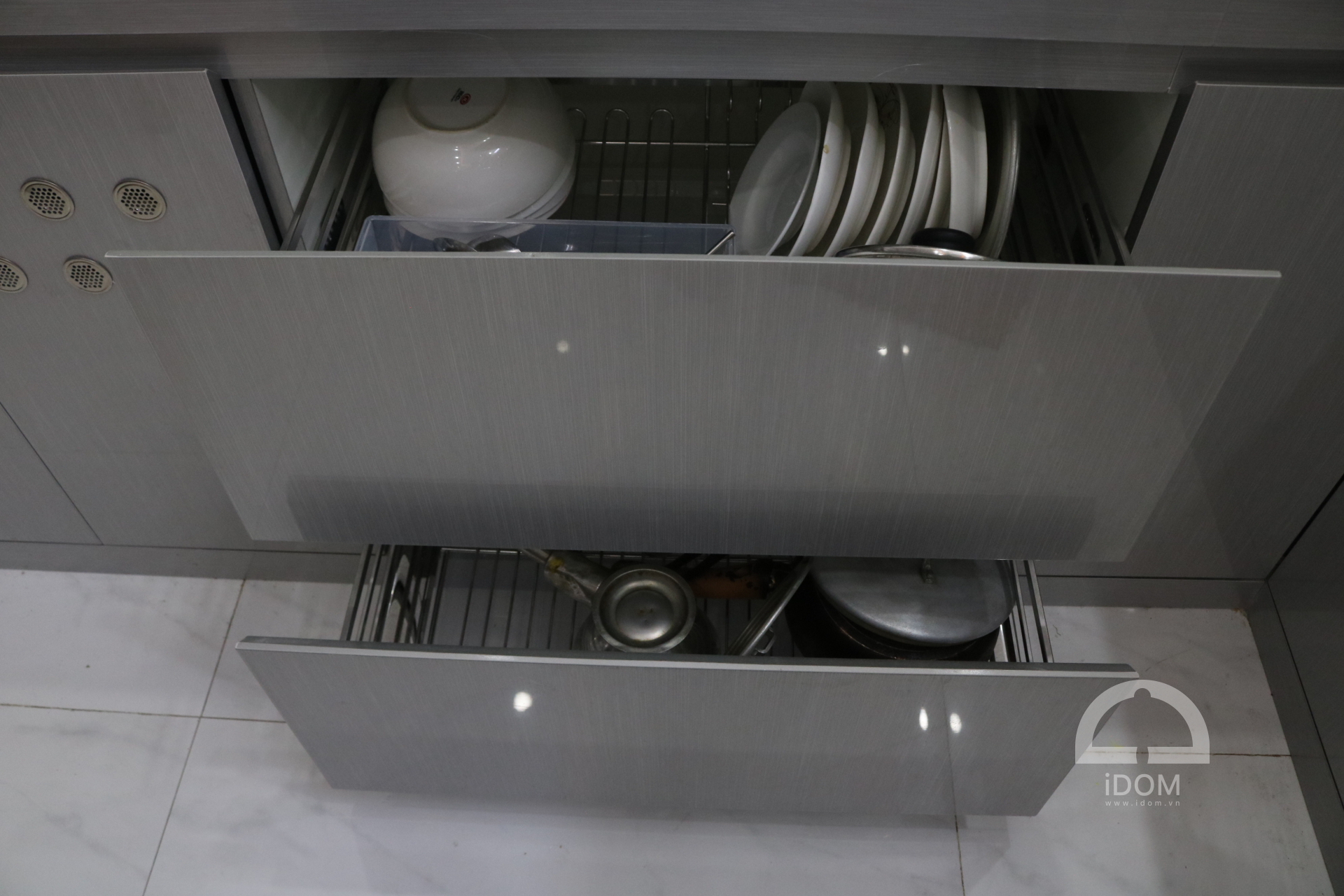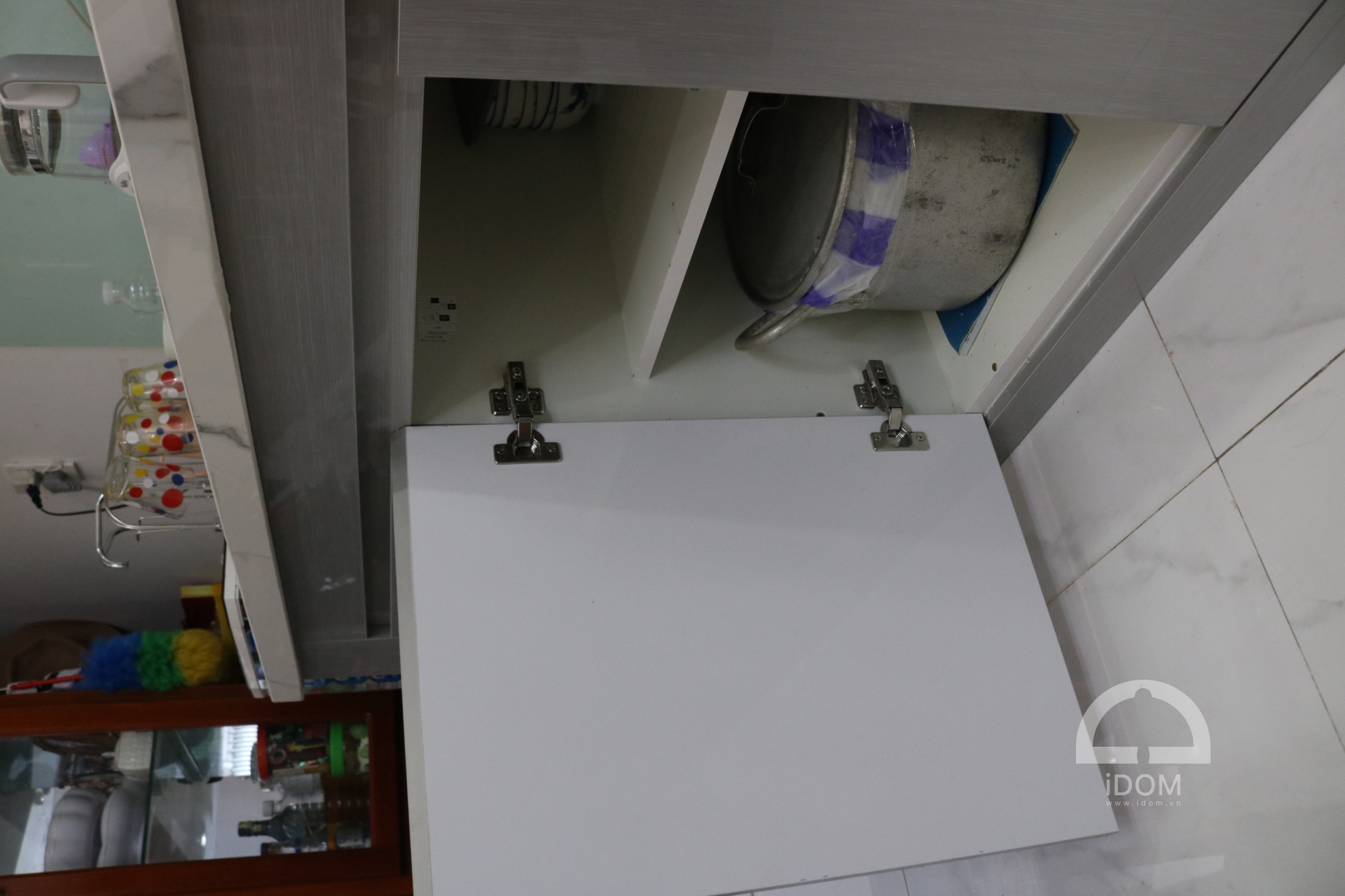 Tủ bếp cũ nhà gia chủ đã xây đanh bê tông tuy nhiên khách hàng không muốn đập bỏ nó, do đó giải pháp của IDOM dành cho tủ bếp lần này là sử dụng chất liệu nhựa PVC phủ Acrylic để làm bếp trên nền khung bê tông có sẵn. Sau đây là một số hình ảnh về mẫu tủ bếp này.