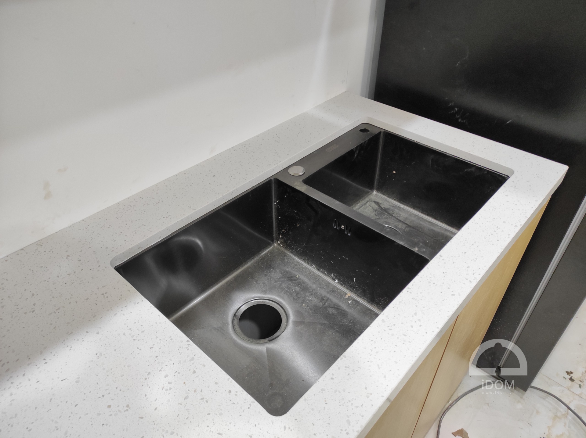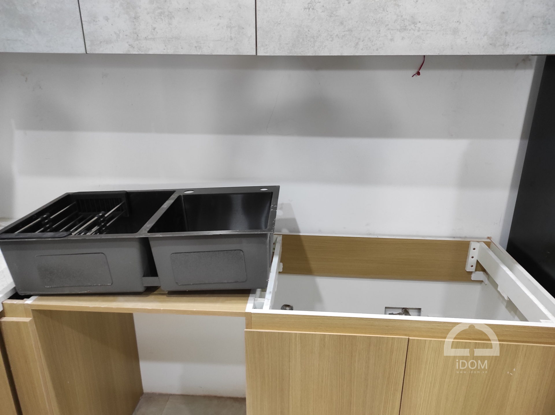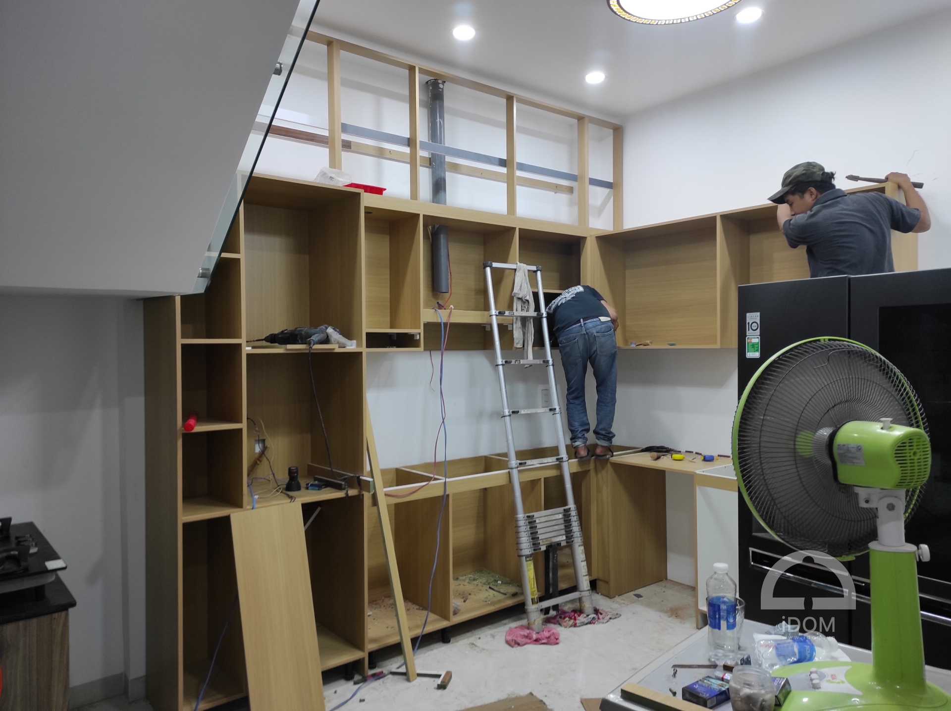 Nội Thất - Tủ Bếp IDOM đã thi công lắp đặt xong tủ bếp gỗ công nghiệp bền đẹp và tinh tế mang đến cho phòng bếp nhà Anh Đức một phong cách hoàn toàn trẻ trung hiện đại. Với tông màu ghi xám (màu bê tông) ở tủ bếp trên và bên dưới là màu vân gỗ mang lại cho gia đình anh một không gian bếp dễ chịu. Sau đây là một số hình ảnh thi công thực tế được thực hiện bởi IDOM.