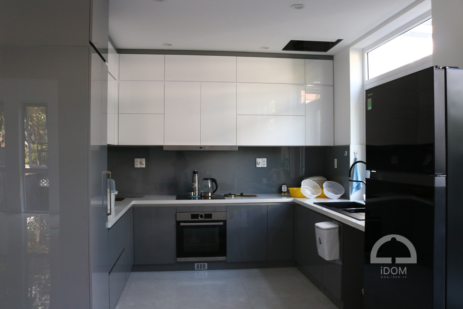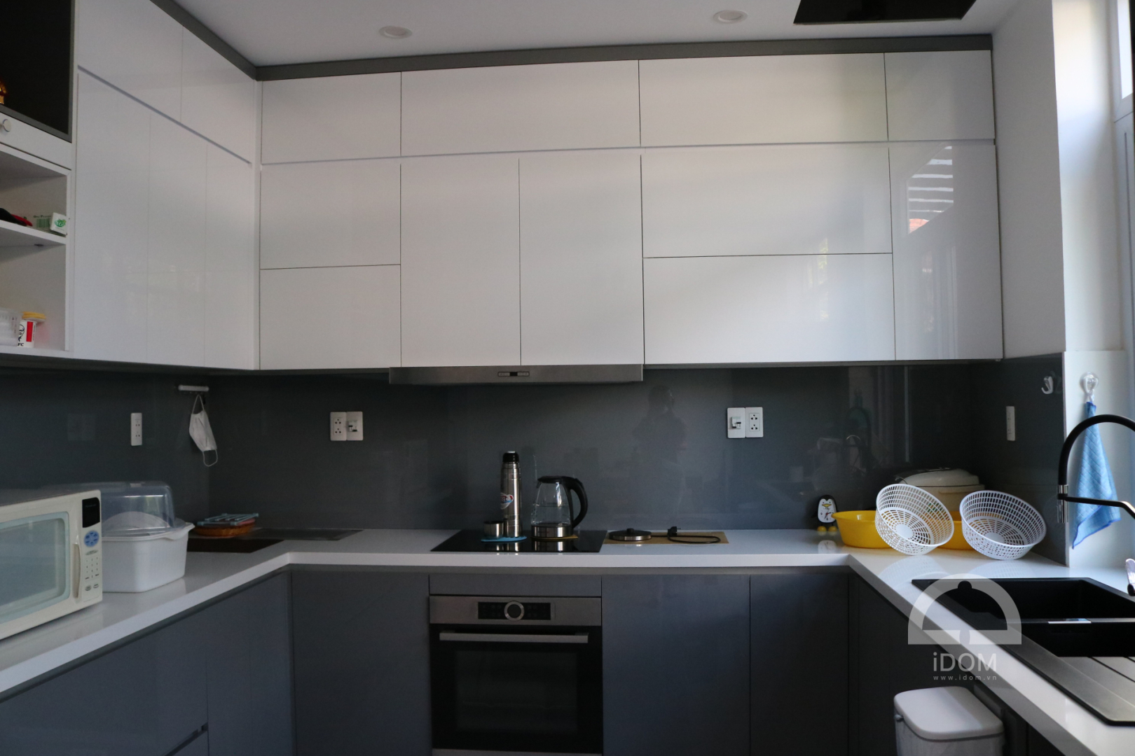Một hệ tủ bếp có tone màu ghi xám với vai trò chủ đạo và màu trắng đem lại sự tinh tế, có chiều sâu cho không gian, 2 tông màu này được sử dụng để phân định không gian, thêm chiều sâu cho phòng bếp. Mẫu tủ bếp nhựa tone ghi trắng sẽ trông có vẻ lớn hơn so với thực tế và trong những ngôi nhà phố hay nhà có diện tích hạn hẹp đều vô cùng thích hợp. Cùng IDOM tham khảo hệ tủ bếp nhựa đẹp dưới đây để có thêm nhiều ý tưởng thiết kế cho căn nhà của mình nhé!
