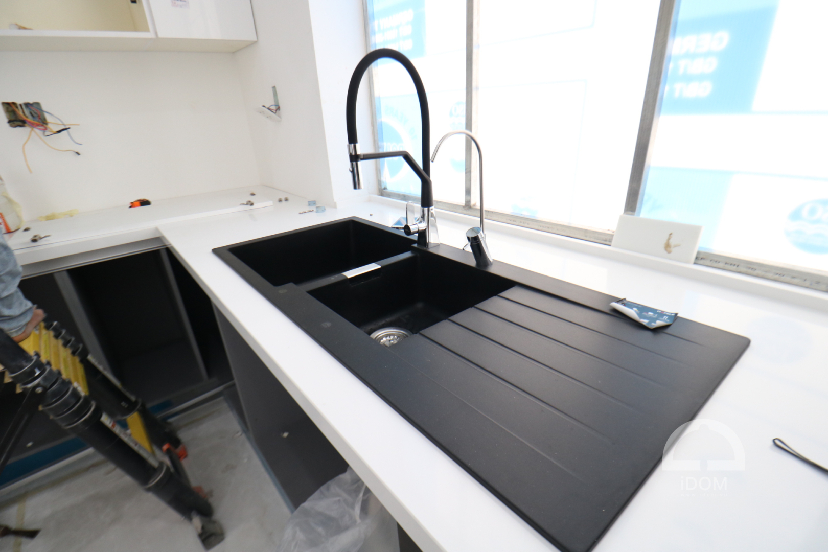 Thiết bị & Phụ kiện: Chậu, vòi Hafele, máy lọc nước Ao smith, Tay nâng Blum, Bản lề Hafele, Ray trượt Hafele, Khay chia, Phụ kiện tủ khô, đèn Led.
