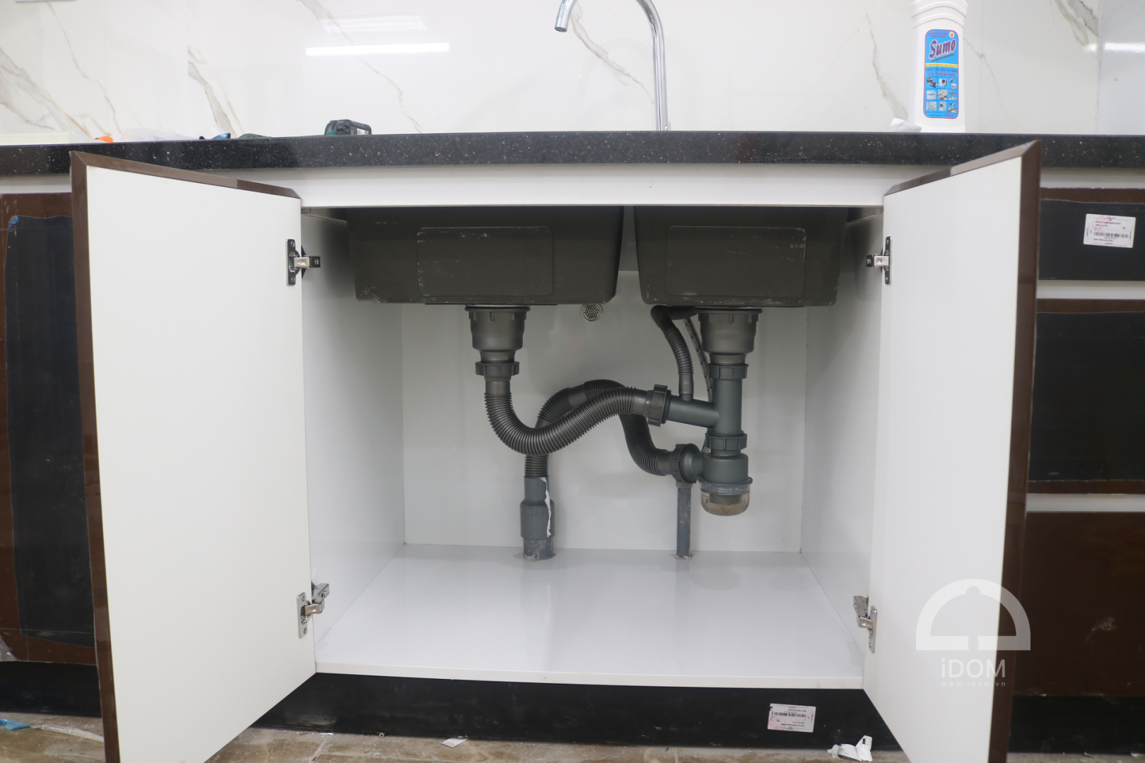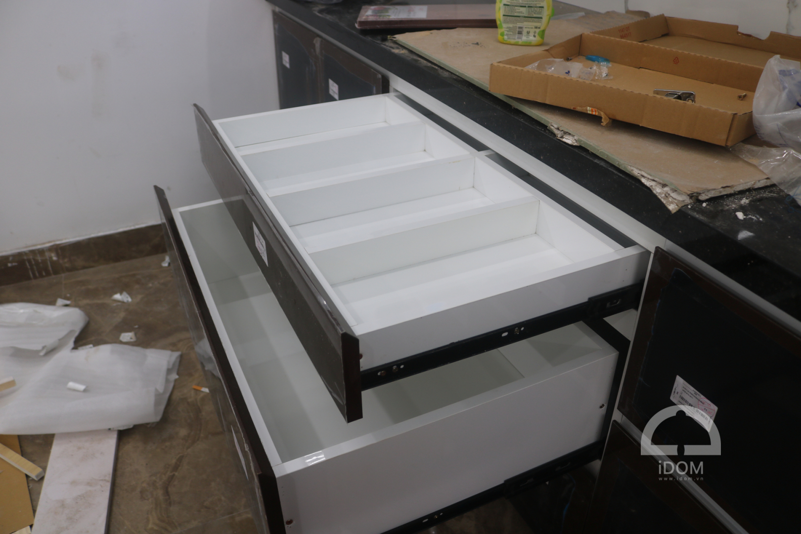 Thiết bị & Phụ kiện: Tay nâng Blum, Kệ úp bát cố định Higold.