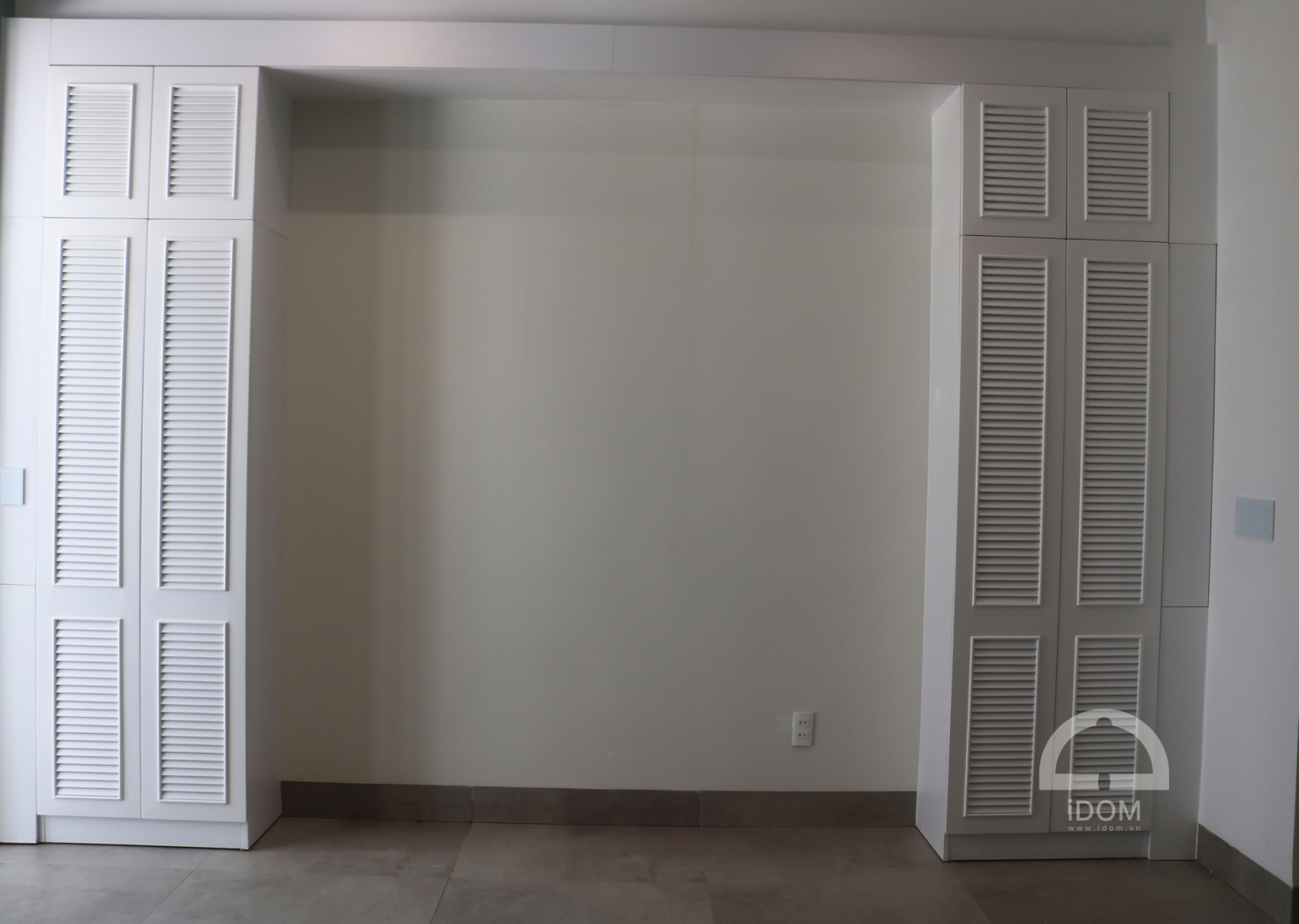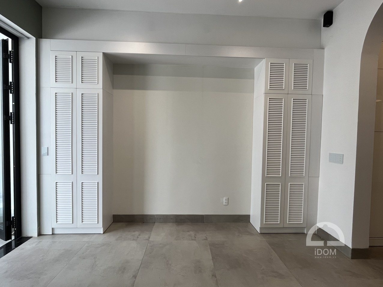 Bên cạnh đó IDOM còn thiết kế và thi công cho gia chủ những hạng mục sau: Thùng tủ lạnh kết hợp tủ khô (giải pháp mở cánh bằng ray trượt giấu cánh), tủ giày phòng khách.
